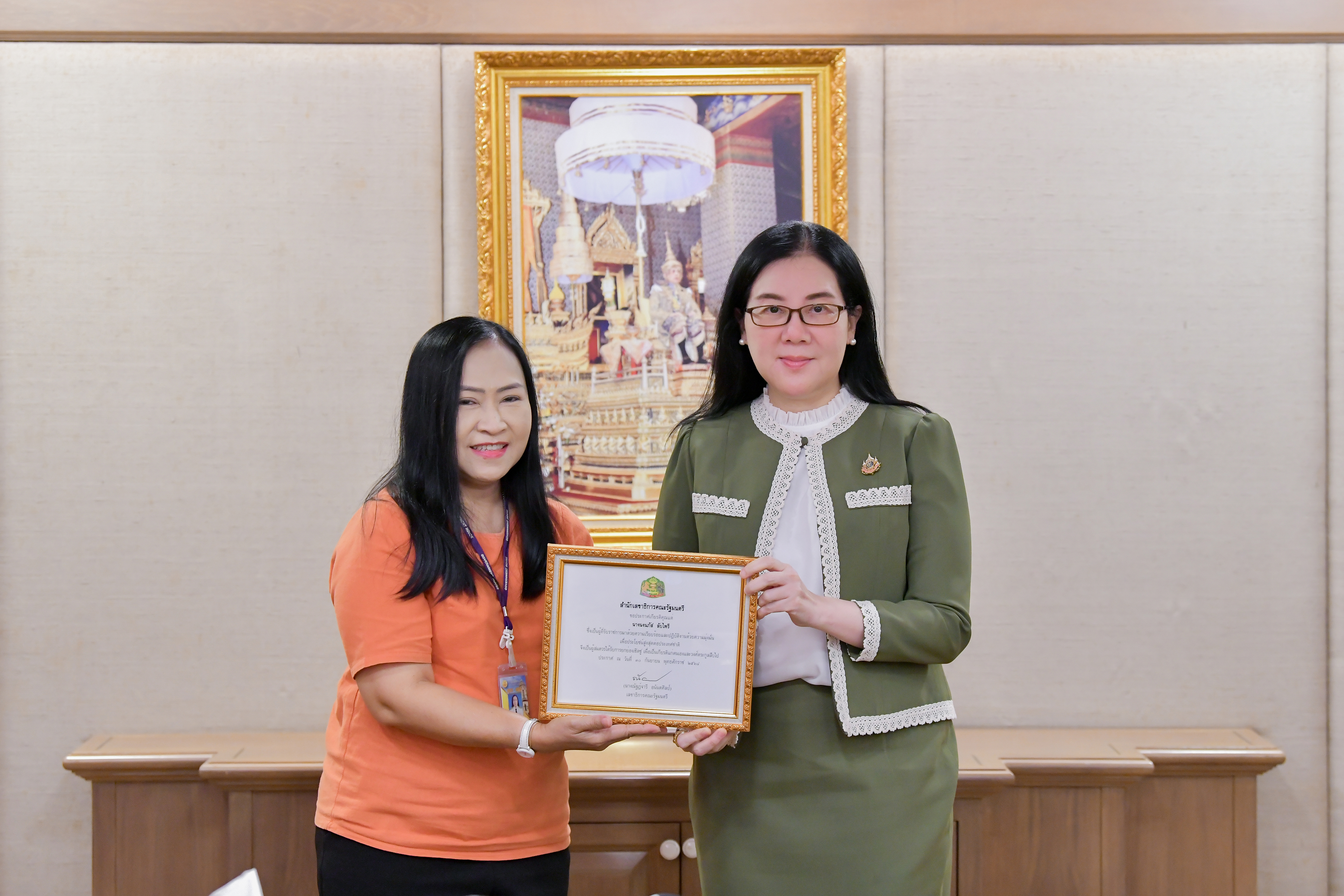 นางณัฐฏ์จารี อนันตศิลป์ เลขาธิการคณะรัฐมนตรี พร้อมด้วยผู้บริหารและเจ้าหน้าที่สำนักเลขาธิการคณะรัฐมนตรี ร่วมพิธีมอบใบประกาศเกียรติคุณผู้เกษียณอายุราชการ ประจำปี 2568 ของสำนักเลขาธิการคณะรัฐมนตรี